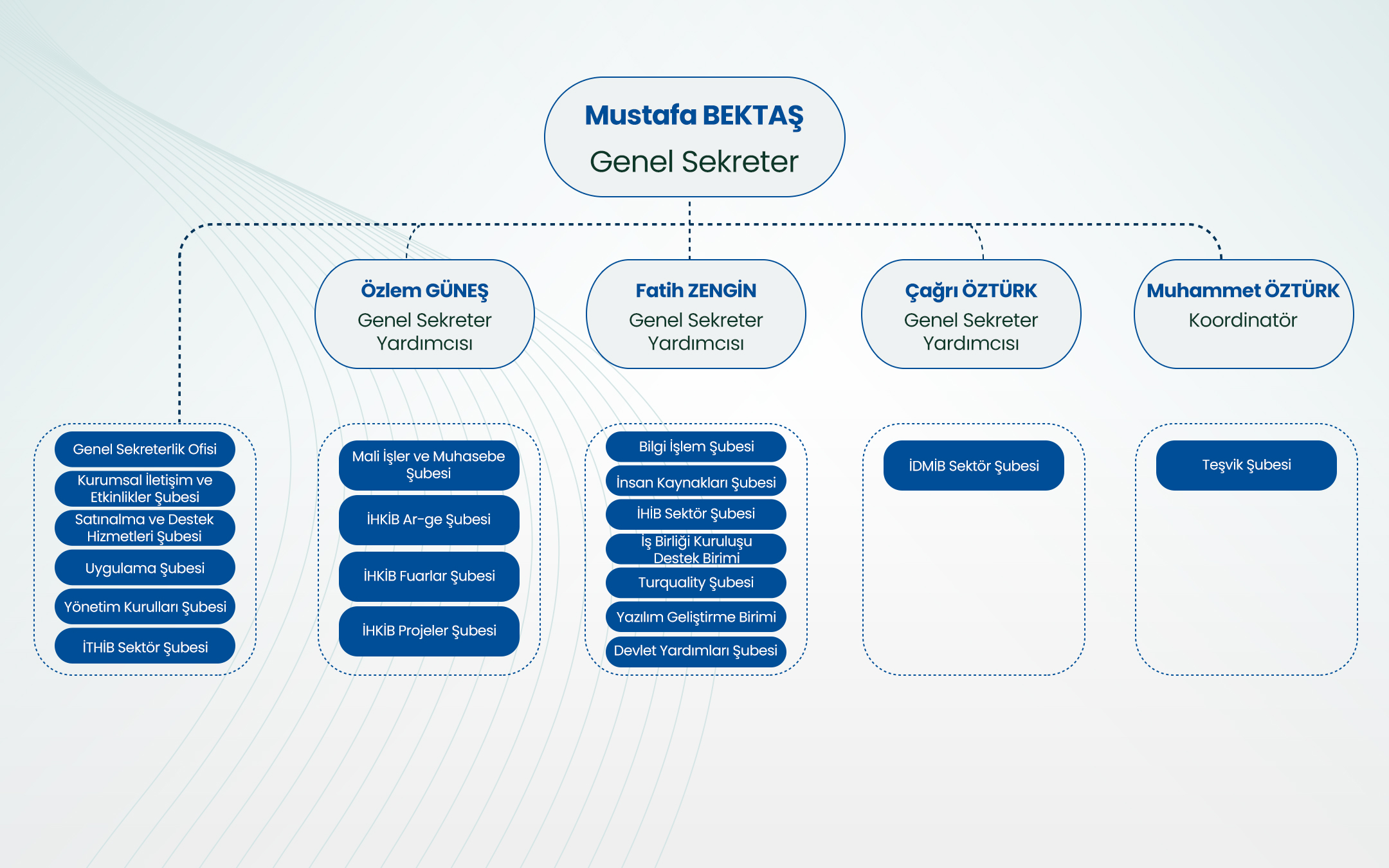 Organizasyon Şeması ANA SAYFAKURUMSAL PAYLAŞ HakkımızdaAmaç ve FaaliyetlerimizTİM ve İhracatçı Birlikleri MevzuatıKurumsal KimlikOrganizasyon ŞemasıBilgi Güvenliği PolitikamızKişisel Verilerin Korunması